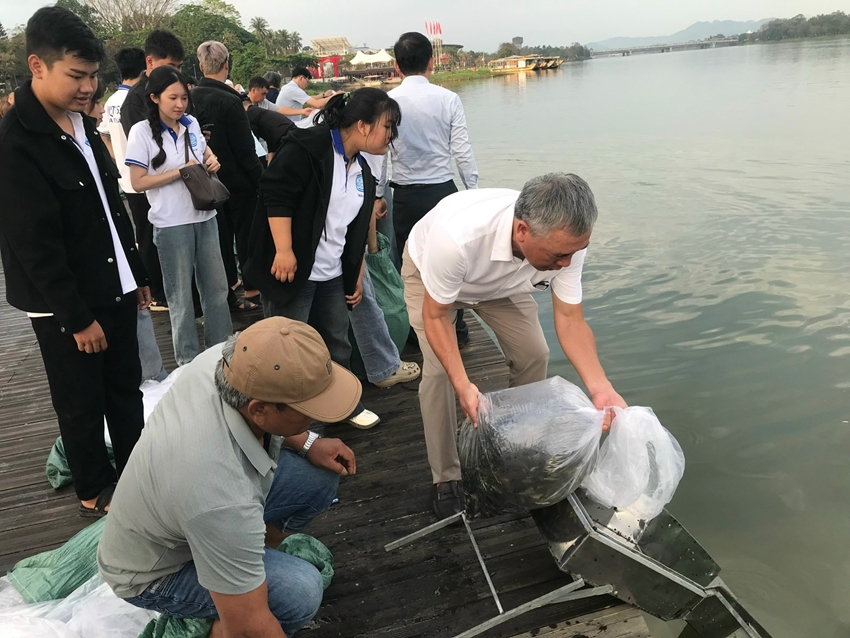 | Lãnh đạo Sở Nông nghiệp và Môi trường thả cá, tái tạo nguồn lợi thủy sản trên sông Hương |
