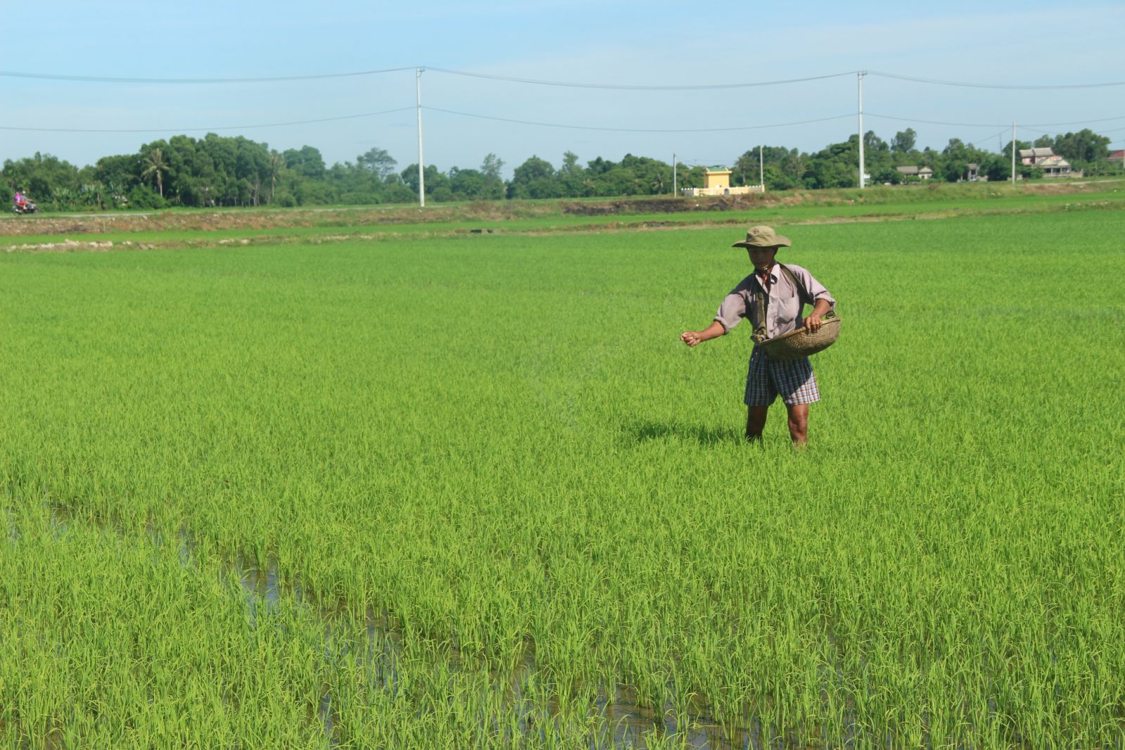 Nông dân Quảng Điền tích cực chăm sóc những trà lúa gieo sạ trễ so với khung lịch thời vụ