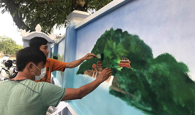 Vẽ tranh trên tuyến đường kiểu mẫu tại xã Phú Thượng