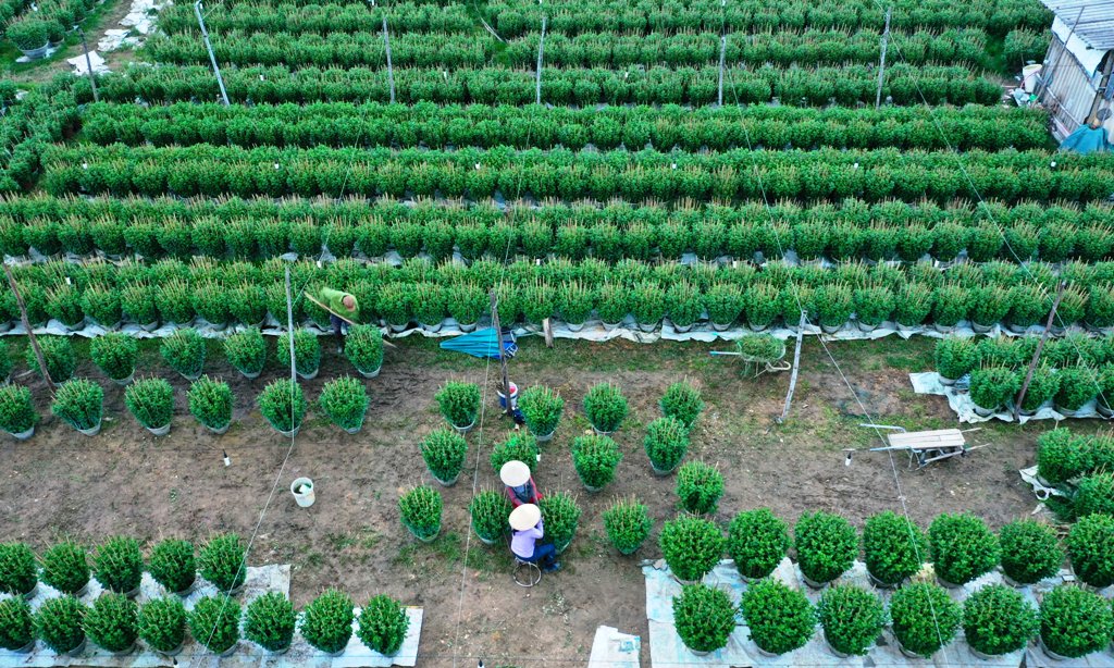 Thời điểm này, nhiều vườn hoa cúc chậu được chăm chút kỹ lưỡng để kịp nở hoa vào đúng dịp Tết Nguyên đán