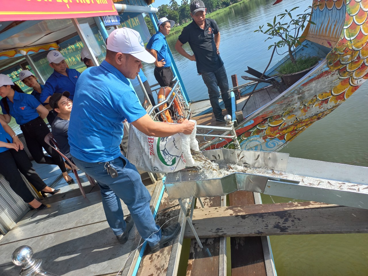 Thả cá giống xuống sông Hương