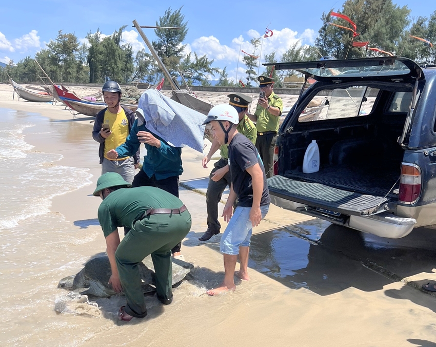 Hạt Kiểm lâm Phú Lộc đã phối hợp UBND xã Giang Hải, Công an xã, Đồn Biên phòng Vinh Hiền và Nhân dân trong thôn tiến hành cứu hộ và vận chuyển đến biển Giang Hải để thả về môi trường tự nhiên.