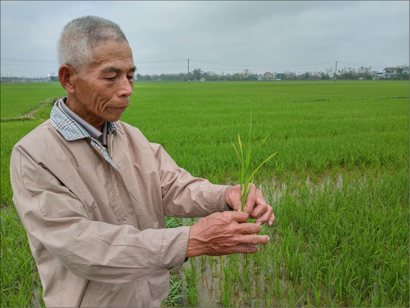 Hộ ông Duy trồng hơn 1 mẫu lúa thịt với cơ cấu hai giống chủ yếu là Khang dân và TH5. Từ cuối năm 2017, làm đất xong, do đồng còn ngập nước, dù HTX và bà con nông dân đã tiến hành huy động máy móc để tiêu úng, nhưng sau khi sạ, khoảng 2 sào lúa của ông Duy đã bị chết, thiệt hại hơn 1 triệu đồng tiền giống. Tiếp đó, nhiều diện tích gặp mưa rét kéo dài khiến cây lúa chết lẻ tẻ trên ruộng.