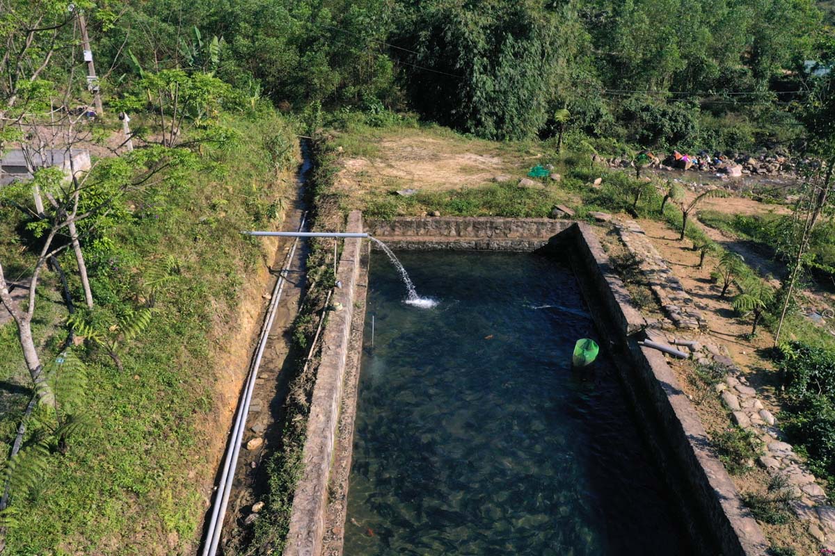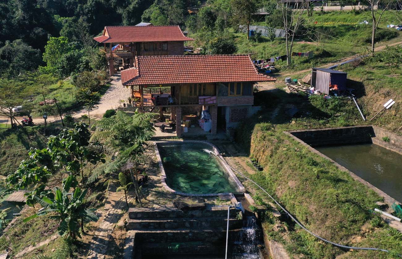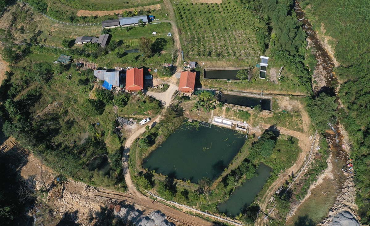Trang trại nuôi cá tầm nằm trên đồi cao, gần suối A Nor