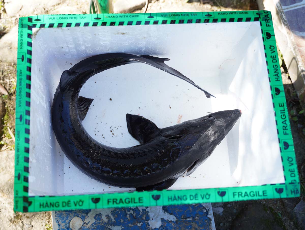 Cá tầm được đóng thùng xốp, ướp đá vận chuyển đi ngoại tỉnh theo đặt hàng của khách
