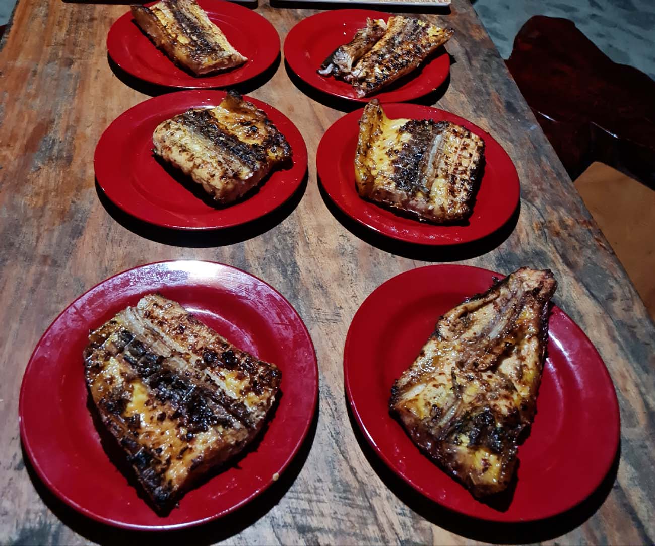 Cá tầm có giá trị dinh dưỡng cao, chứa vitamin A, vitamin 12, photpho, vitamin nhóm B, cung cấp DHA, omega 3, omega 6. Trong ảnh: Cá tầm nướng phục vụ khách tại trang trại