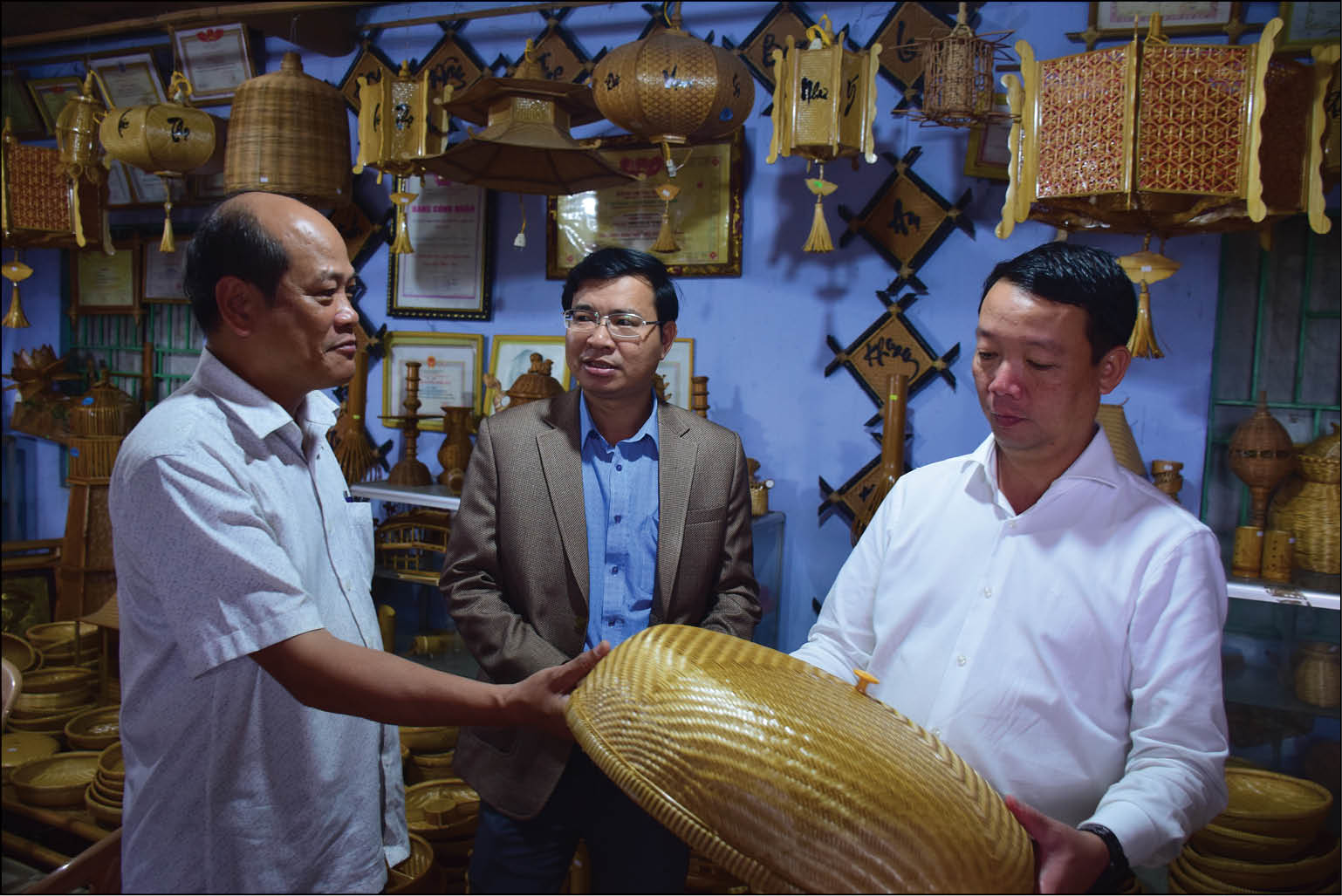 Phó Chủ tịch UBND tỉnh Phan Thiên Định (bìa phải) thăm làng nghề đan đát Bao La
