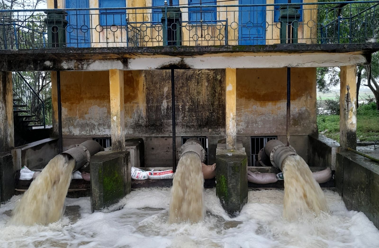 Trạm bơm ở Hương Vinh (TP. Huế) tăng công suất tiêu úng cho lúa- ảnh Hà Nguyên