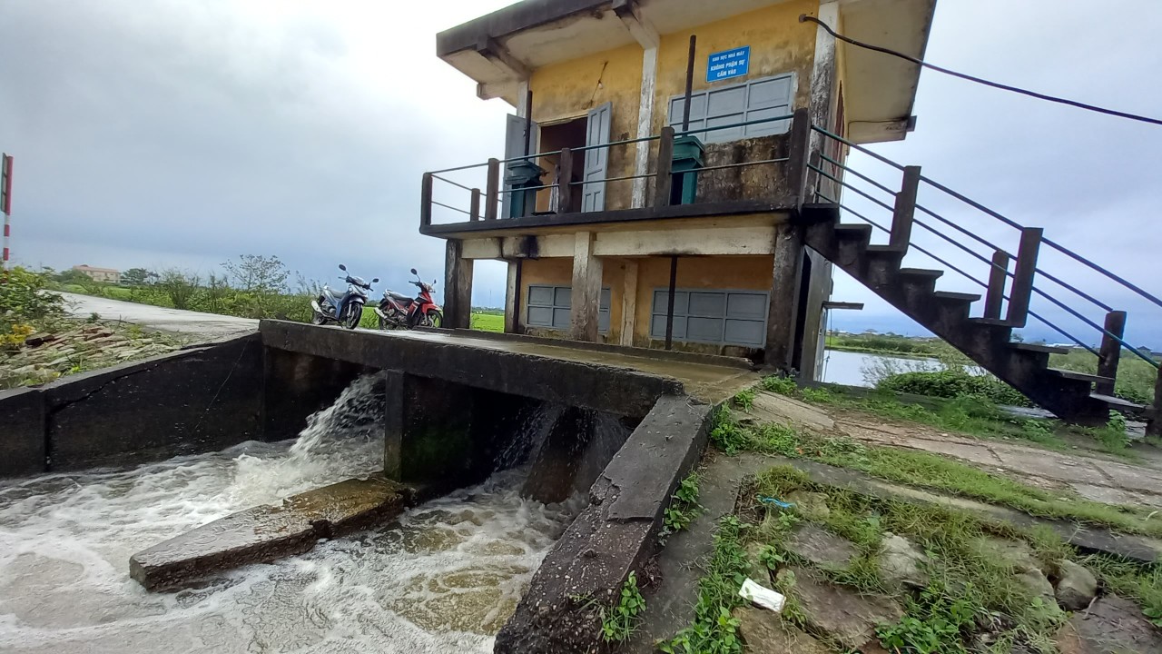 Công ty Quản lý Khai thác Công trình Thủy lợi tỉnh vận hành các cống qua đê nhằm thiêu thoát nước- ảnh Hà Nguyên