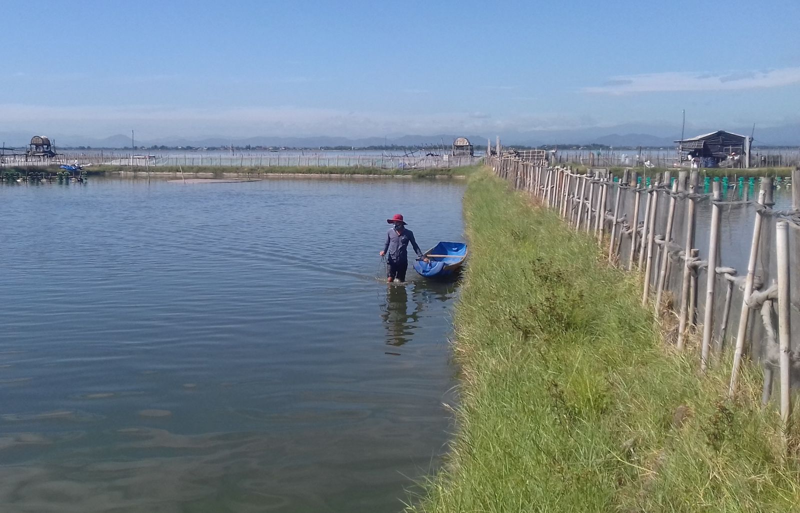 Người dân kiểm tra ao hồ nuôi tôm