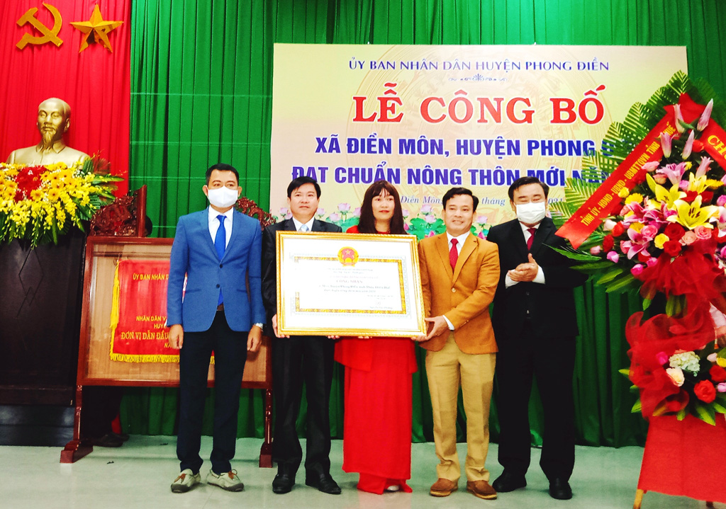 Tại buổi lễ, thay mặt lãnh đạo UBND tỉnh, lãnh đạo Sở NN&PTNT tỉnh cùng lãnh đạo huyện Phong Điền đã trao bằng công nhận xã đạt chuẩn NTM năm 2020 cho Đảng bộ, Chính quyền và Nhân dân xã Điền Môn. Dịp này, UBND huyện Phong Điền đã tặng giấy khen cho 4 tập thể và 6 cá nhân có thành tích xuất sắc trong xây dựng NTM trên địa xã Điền Môn.