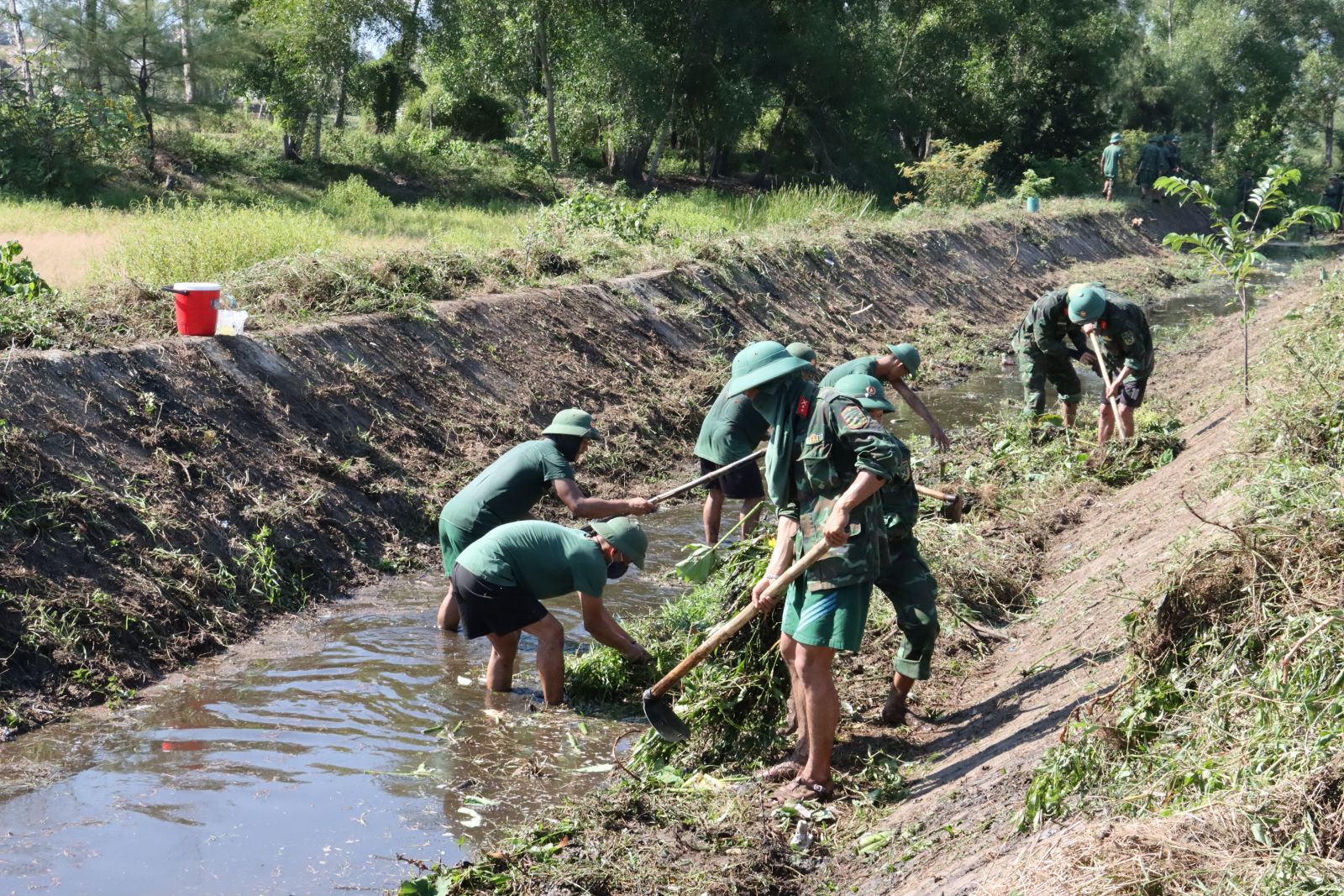 Sau một ngày cán bộ, chiến sĩ, đoàn viên, thanh niên và người dân địa phương khơi thông 250m kênh thoát lũ (lòng kênh rộng 4m); khơi thông mương thoát nước 200m (lòng mương rộng 1m) và phát quang, vệ sinh trên 300m đường làng, ngõ xóm.