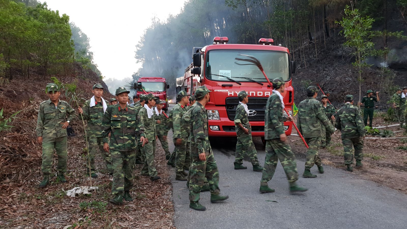Hiện, các lực lượng kiểm lâm, bảo vệ rừng, HTX, lực lượng khai thác nhựa thông đang đi đo đạc, kiểm tra toàn bộ diện tích. Giám đốc HTX Hương Hồ 1 Bùi Văn Sâm bày tỏ: Hôm nay, dù có rất đông lực lượng tham gia chữa cháy (thống kê gần 1 ngàn người) nhưng do gió tây nam quá lớn làm lửa bùng phát nhanh, mạnh nên cũng đành bất lực. Để đề phòng cháy trở lại, hiện chúng tôi vẫn đang túc trực và cho lực lượng đi kiểm tra. Với những cây thông còn cháy sẽ cưa bỏ, cây bị mục, tổ mối, thực bì còn cháy âm ỉ sẽ được xử lý, bơm nước dập tắt tránh cháy ngún.