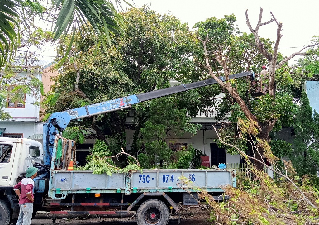 Để chủ động phòng chống cơn bão Noru, bảo đảm an toàn tính mạng và tài sản của Nhà nước và Nhân dân, các địa phương trên địa bàn huyện Phong Điền đang khẩn trương kiểm tra, cắt tỉa cây xanh trên các tuyến đường, nhất là khu vực trung tâm, các trường học, cơ quan công sở... Tại các tuyến đường trung tâm thị trấn Phong Điền và dọc tuyến Quốc Lộ 1A, HTX Môi trường Phong Điền đã huy động phương tiện máy móc, nhân lực tiến hành cắt, tỉa cành, hạ thấp tán cây xanh.