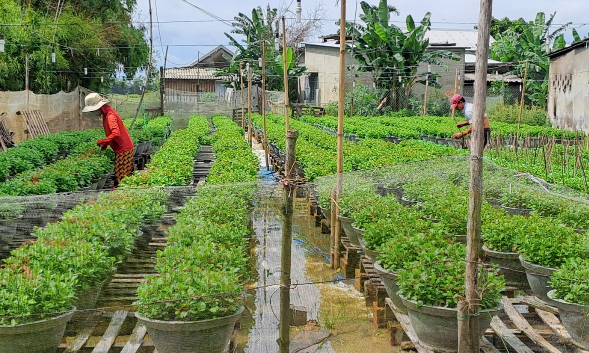 *Gần 180 hộ trồng hoa tết ở xã Thủy Thanh – vựa hoa lớn nhất của TX. Hương Thủy đã hoàn tất việc bọc lưới, di chuyển số chậu hoa ở khu vực trống đến nơi có vách, tường chắn gió; số chậu đặt trên giàn cũng được bà con kê, chèn, ràng dây chắc chắn. Chuẩn bị cho vụ hoa Tết năm 2023, toàn xã Thủy Thanh trồng hơn 67 ngàn chậu hoa. Rút kinh nghiệm những năm trước hoa bị ngập úng do lũ lụt, người trồng hoa ở khu vực thấp trũng của xã đã làm giàn thấp khá vững chắc để kê hoa.