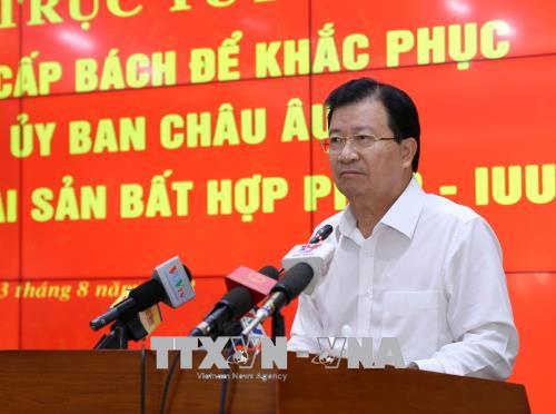 Do đó, Phó Thủ tướng cho rằng, việc nhanh chóng có các biện pháp để EC gỡ bỏ cảnh báo “thẻ vàng” là nhiệm vụ đặc biệt quan trọng và cấp thiết mà Chính phủ và các bộ, ban, ngành, địa phương phải tập trung triển khai trong thời gian tới.