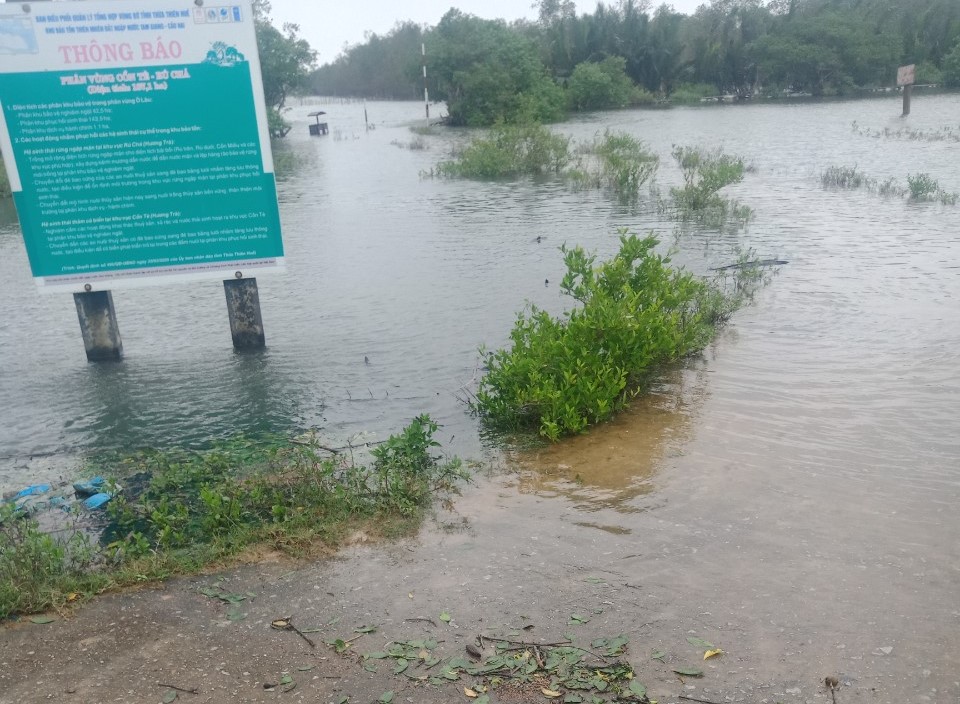 Ông Phạm Công Trạch, Giám đốc HTX Tam Giang (Quảng Thái, Quảng Điền) cho biết, hiện nay, tuyến đê tây sông Ô Lâu với cao trình thấp nước đã lấp xấp vượt qua mặt đê. Ngày 18/12, mưa cùng sóng lớn gây triều cường, đánh mạnh vào mái đê gây nước tràn và nguy cơ sạt lở trên tuyến- nhất là những đoạn đê được đắp bằng đất hoặc điểm tiếp nối giữa đê bằng đất và bê tông.