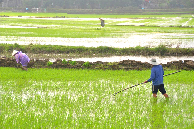 Nhiều diện tích lúa ở Quảng Điền phải trỉa dặm lại