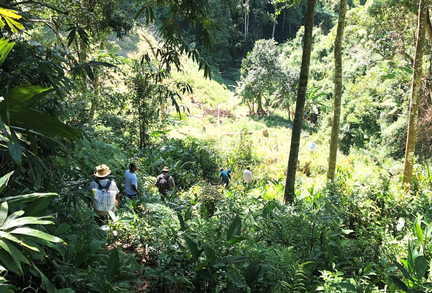 Từ đường đồi A Bia đi vào rừng sâu thêm 2km, địa hình dốc khúc khuỷu mới đến vùng có xà lách xoong