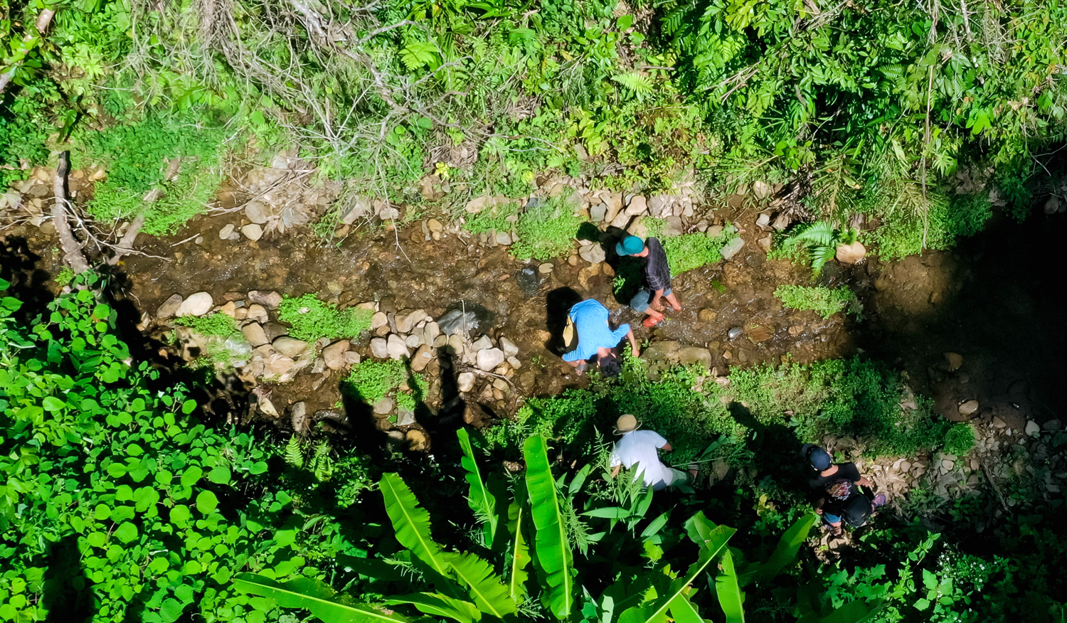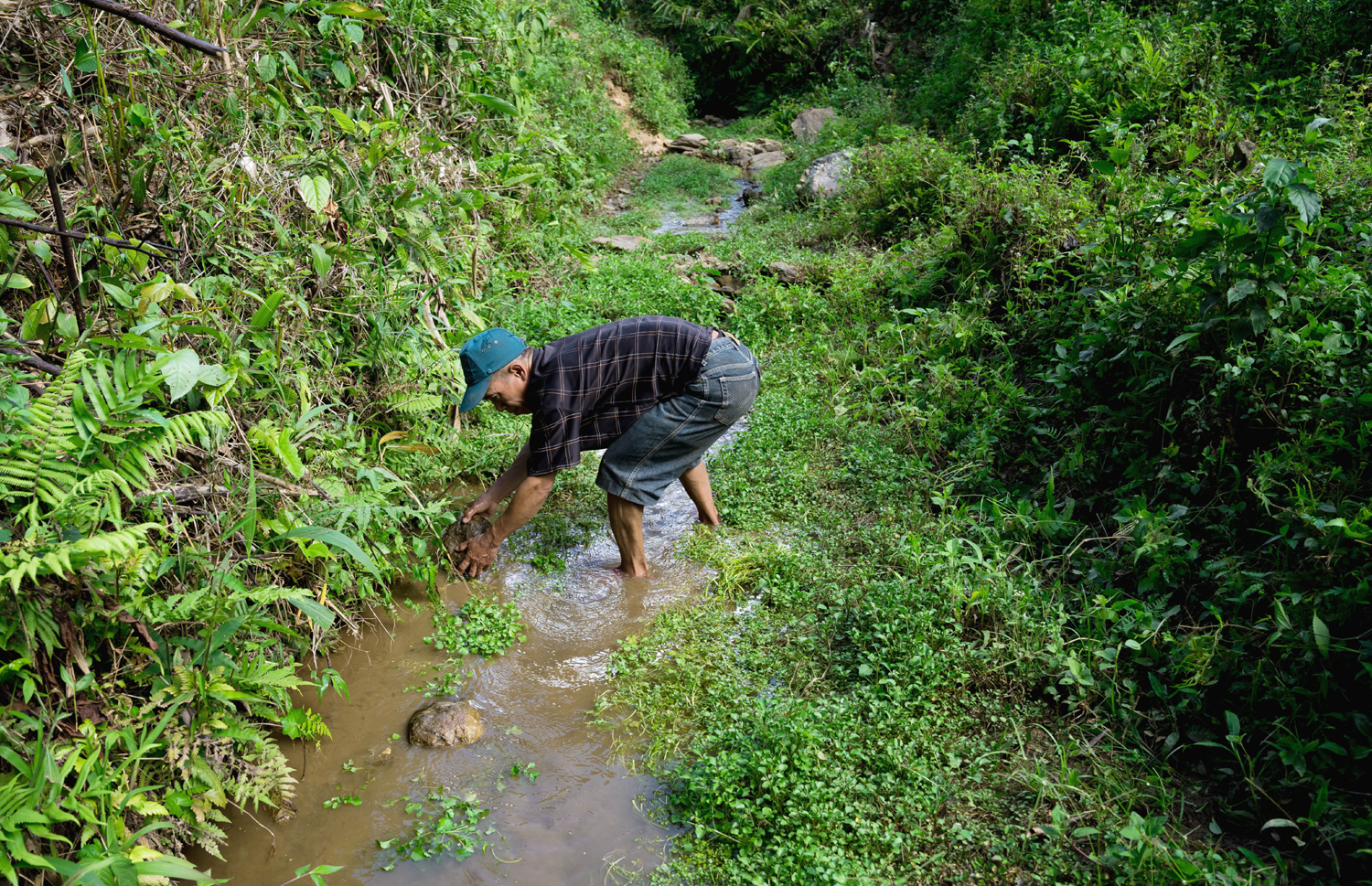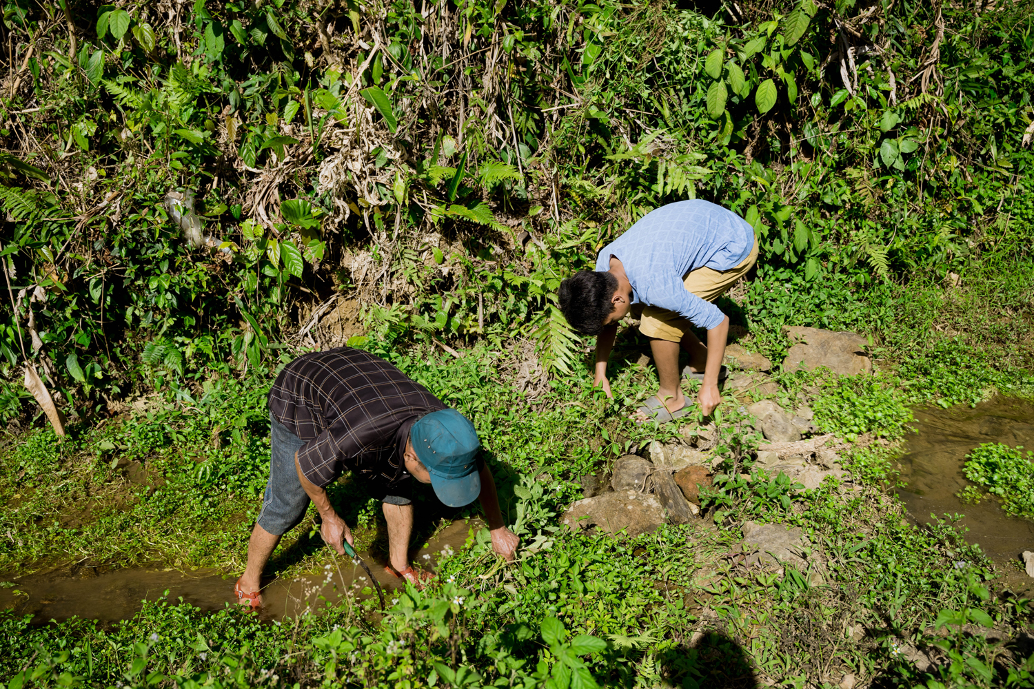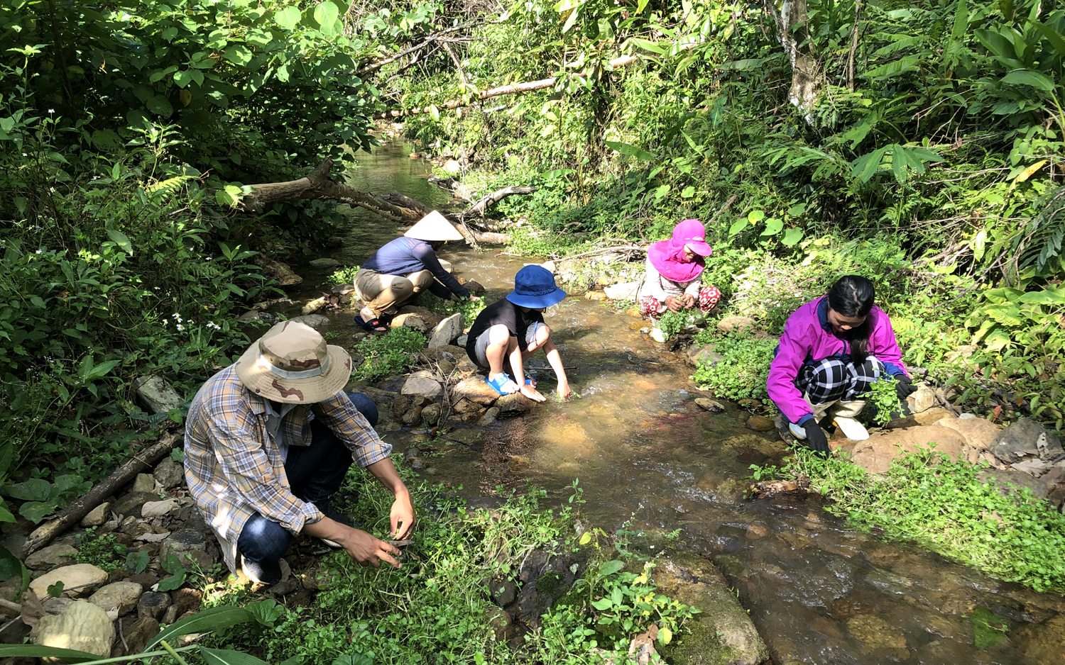 Rửa, phân loại, chọn lọc rau ngay tại suối