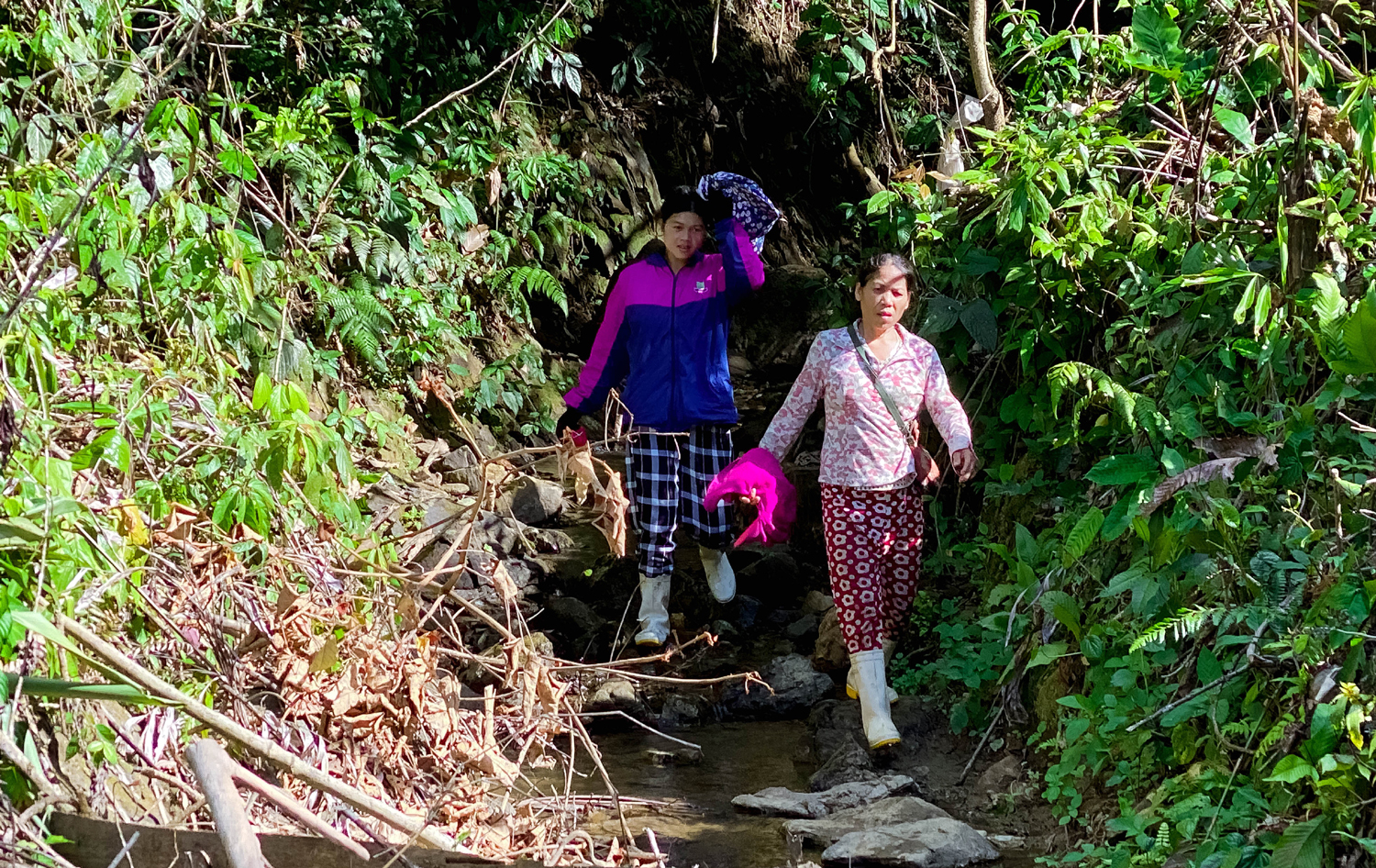 Phụ nữ thường nai nịt, mang ủng để dễ di chuyển đường rừng, vượt suối