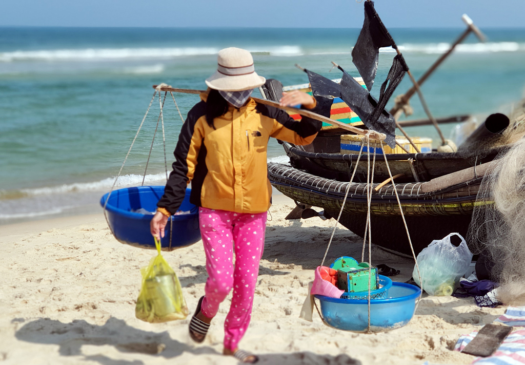 Nhanh chóng gánh cá đi bán cho kịp phiên chợ chiều