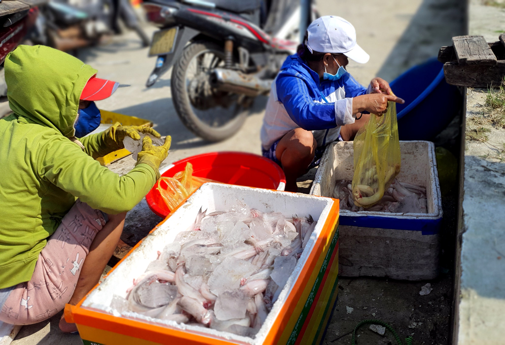 Cá khoai là đặc sản nên thương lái luôn túc trực để thu mua, ngư dân không lo đầu ra