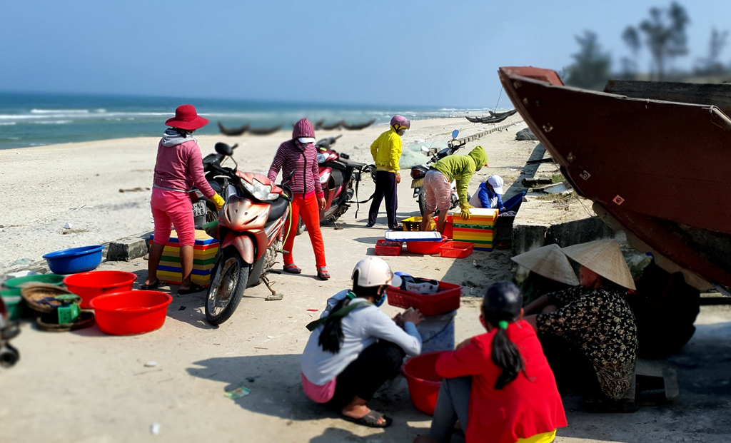 Khâu bảo quản cá, chở lên TP. Huế tiêu thụ