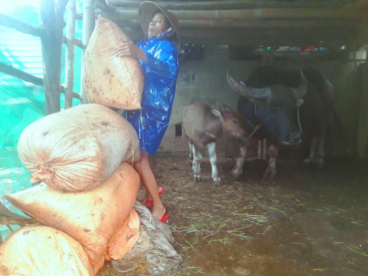 Từ sáng sớm, nước đã mấp mé ngoài đường nhưng đến trưa, đã tràn vào nhà. Ngoài đường bê tông liên thôn ngập sâu từ 0,4-0,5m. Có nơi như Khuôn Phò Đông ngập sâu gần cả mét. Các hộ dân tranh thủ thời gian kê những vật dụng lên “tra”, vận chuyển gia súc đến các điểm cao phòng khi nước lên...