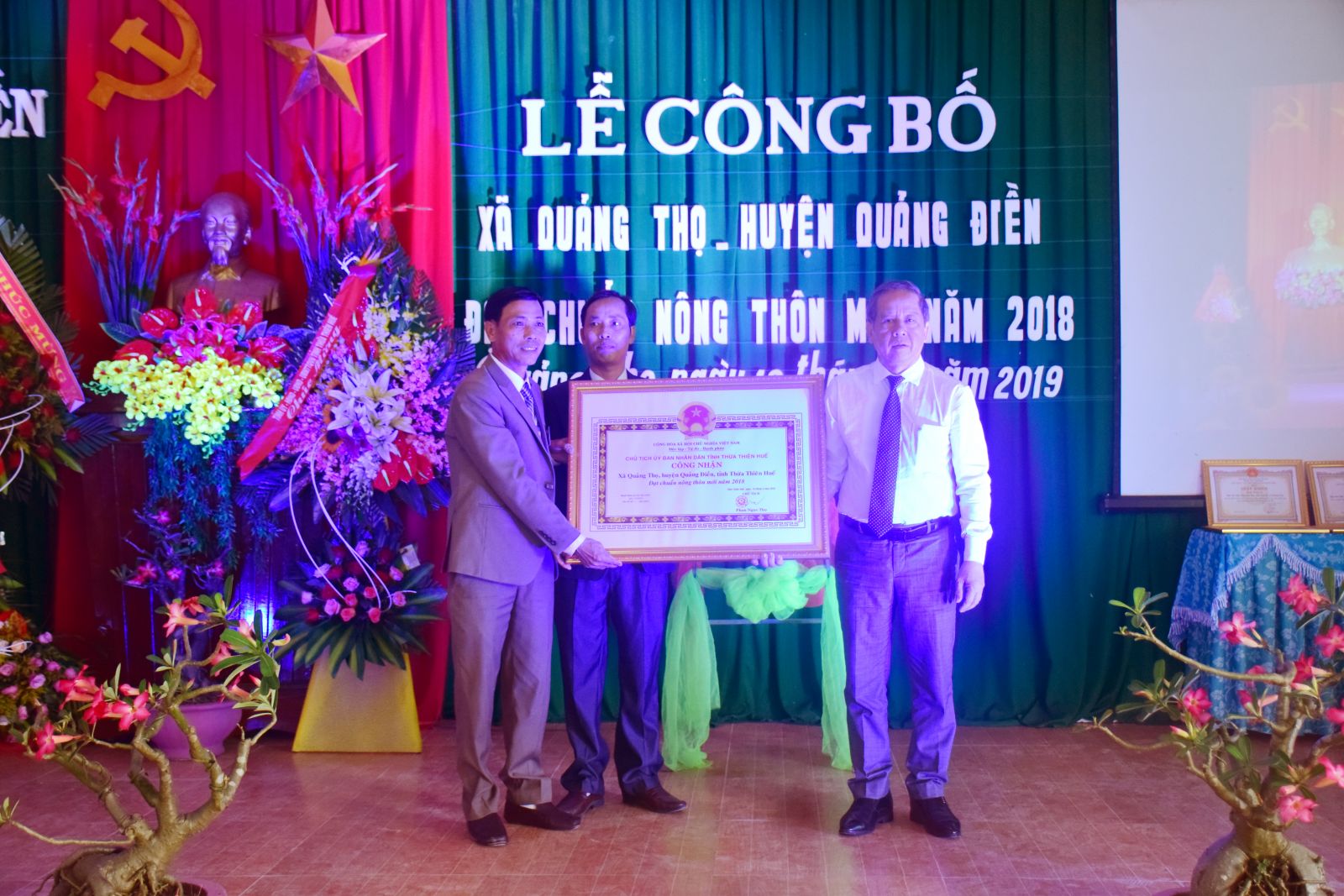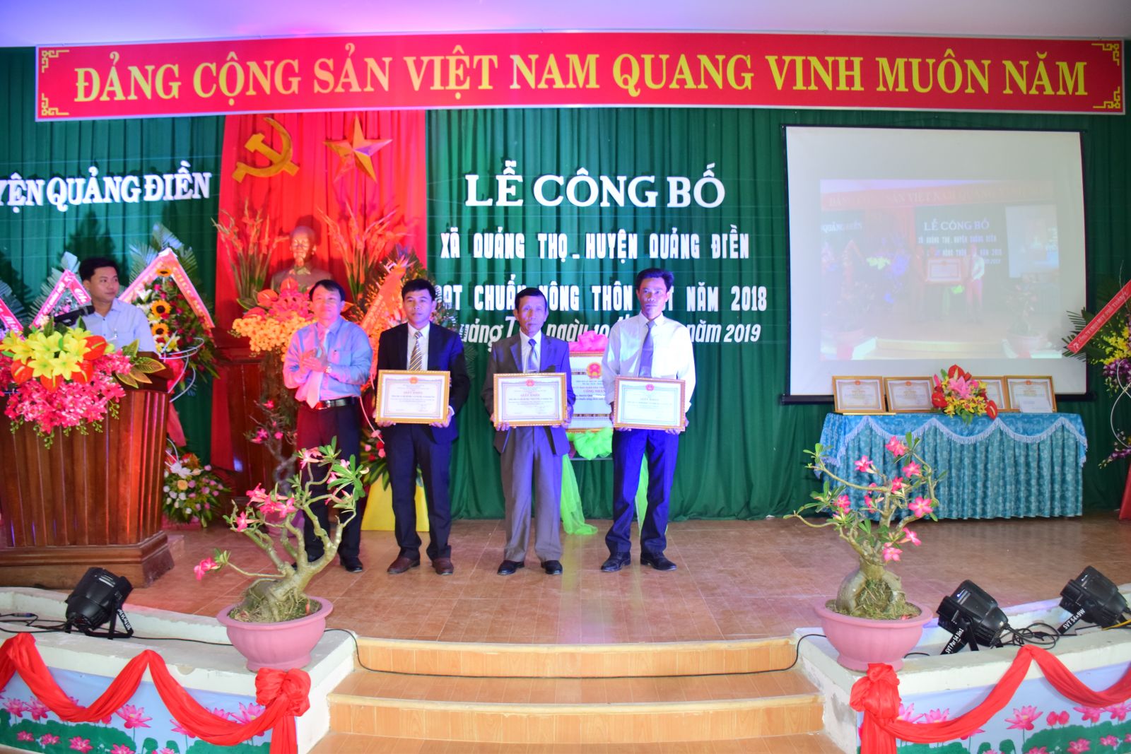 Tại buổi lễ, lãnh đạo huyện Quảng Điền cũng trao tặng khen thưởng cho các tập thể, cá nhân của xã Quảng Thọ có nhiều đóng góp, thành tích xuất sắc trong quá trình triển khai Chương trình Mục tiêu Quốc gia xây dựng NTM của xã giai đoạn 2011-2018.