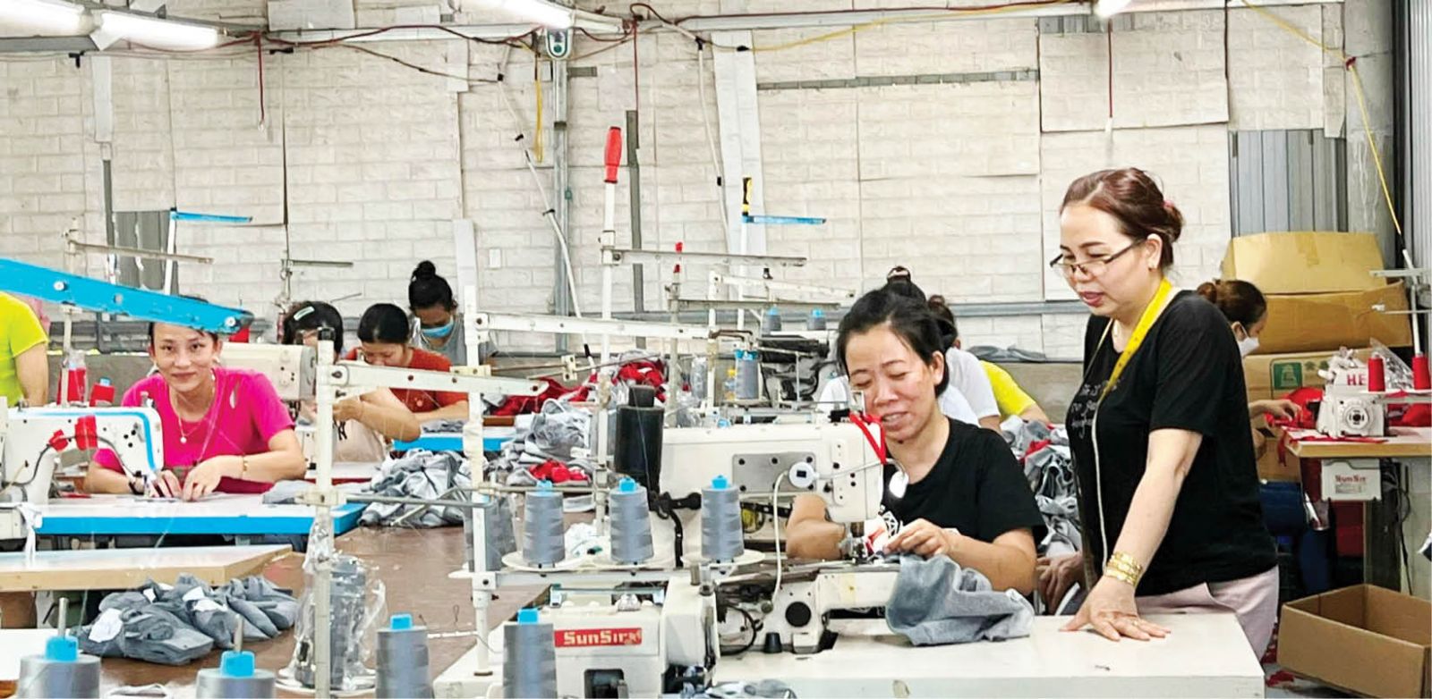 Nhiều cơ sở may gia công trên địa bàn huyện giúp hàng trăm lao động có thu nhập ổn định