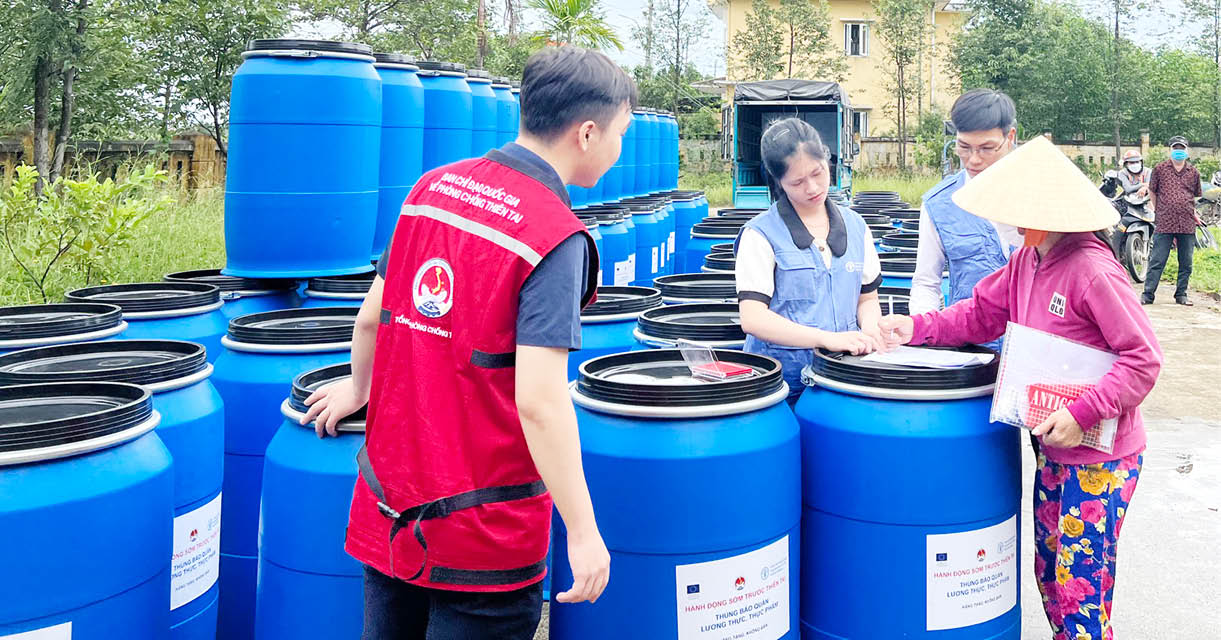 Người dân Hương Xuân nhận thùng nhựa dung tích lớn chứa thực phẩm phòng, chống thiên tai