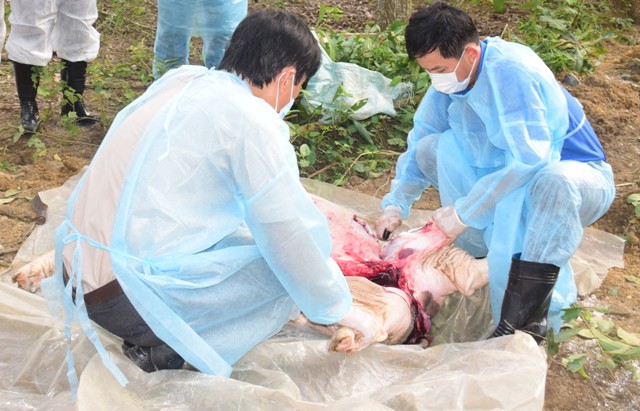 Sau khi phát hiện các triệu chứng bệnh, ngày 17/3, gia đình đã báo với chính quyền địa phương, sau đó, chi cục đã tiến hành lấy mẫu gửi đi xét nghiệm lâm sàng. Kết quả xét nghiệm chiều 18/3 cho thấy, các mẫu bệnh phẩm đều dương tính với bệnh dịch tả lợn châu Phi.