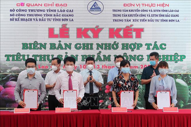 Ký kết ghi nhớ giữa đơn vị tiêu thụ và nhà cung cấp tại hội nghị xúc tiến. Ảnh: Quốc Khánh/TTXVN