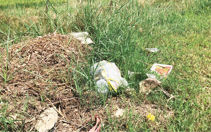 Vừa thăm đồng lúa của gia đình để chọn ngày gặt, ông Nguyễn Hùng lại thu gom một số bao bì vỏ thuốc trừ sâu mà người dân bỏ lại bên bờ ruộng, nói: "Dù biết vứt rác như vậy là ô nhiễm môi trường, nhưng họ vẫn vứt rác đầy chân ruộng, dọc theo bờ kênh, mương nước...".