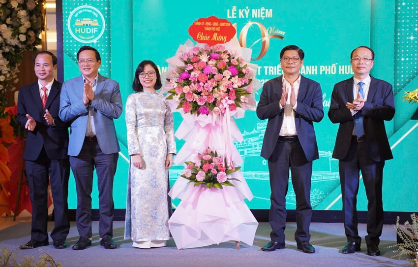 | Lãnh đạo thành phố tặng hoa chúc mừng Quỹ Đầu tư phát triển thành phố Huế |