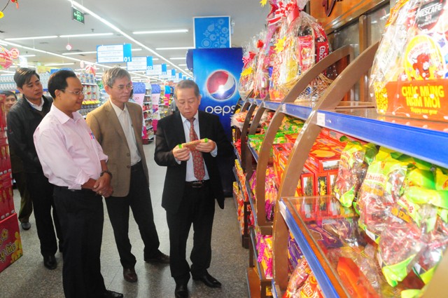Ông Phan Ngọc Thọ xem hàng hóa tại siêu thị Co-op Marrt