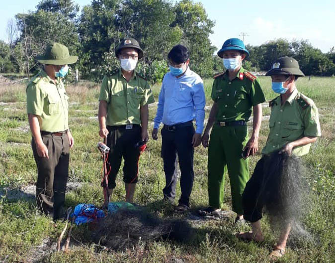 Cán bộ kiểm lâm phối hợp với chính quyền địa phương, công an các xã tháo gỡ 300 mét bẫy chim bằng lưới tại thôn Đức Phú, xã Phong Hòa và thôn Kế Môn, xã Điền Môn; thu giữ 1 bình ắc quy và 3 loa phát tín hiệu bẫy chim trời. Đồng thời phát hiện và lập hồ sơ xử lý 2 vụ quảng cáo kinh doanh động vật rừng trên facebook (vụ việc đang được điều tra, làm rõ mức độ vi phạm để xử phạt theo quy định).