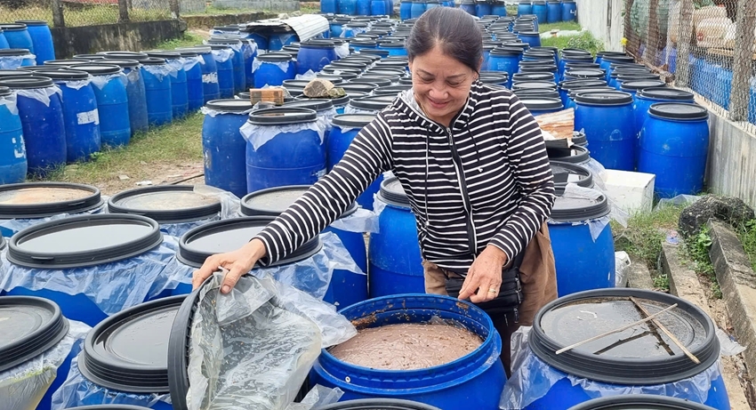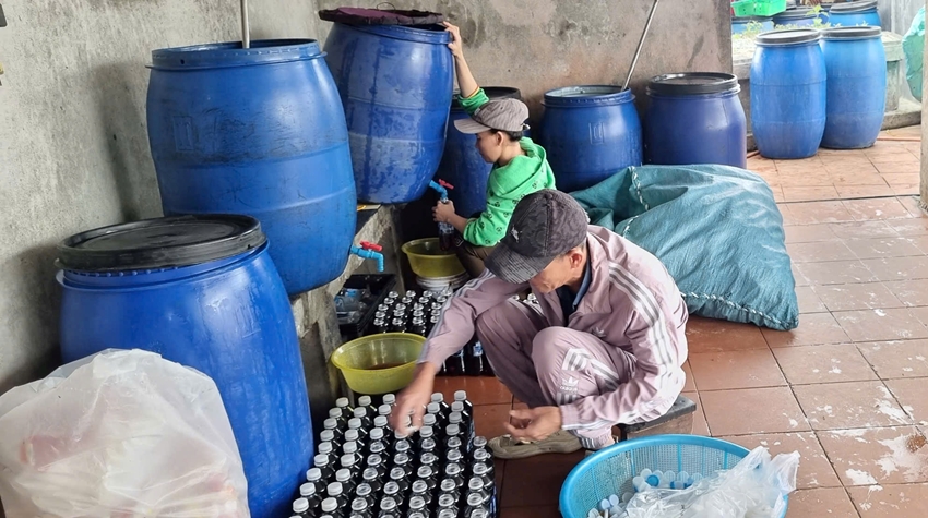 Cái Tết cận kề, tại những xã ven biển đầm phá của Phú Vang, rộn ràng hoạt động cung cấp các mặt hàng đặc sản của địa phương. Khi chúng tôi đến cơ sở sản xuất nước mắm, ruốc và các loại mắm của bà Phạm Thị Lạc (một trong những cơ sở sản xuất lớn trên địa bàn xã Phú Thuận), là lúc bà Lạc cùng 6 nhân công đang khẩn trương chiết nước mắm đóng vào chai, can nhựa đủ các loại; đóng ruốc; chuẩn bị nguyên liệu để trộn các loại mắm (mắm nêm, mắm rò, mắm cá cơm…), “trả” các đơn đặt hàng.