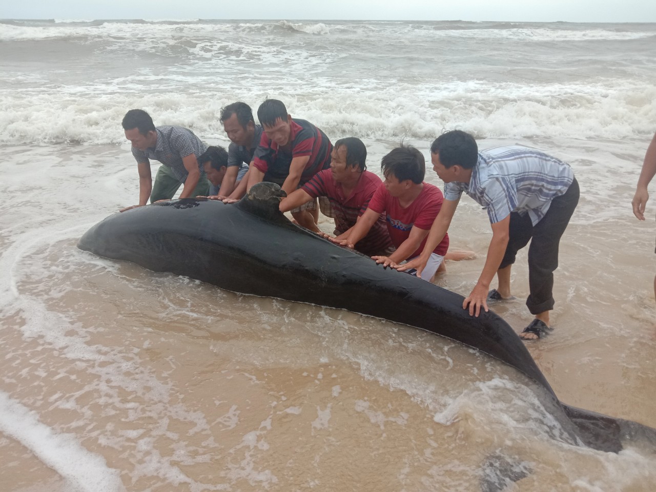 Qua kiểm tra, con cá heo có chiều dài 3,7m, cân năng hơn 3 tạ, sức khỏe tốt, nhưng do biển động, sóng lớn, cá bị mắc cạn không tự bơi ra biển. Sau một thời gian trợ giúp đắc lực của người dân, cá heo đã được thả về với môi trường tự nhiên.
