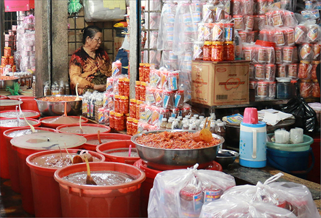 Cơ sở kinh doanh mắm Bà Duệ tại khu hàng mắm trên đường Chương Dương, chợ Đông Ba-Huế