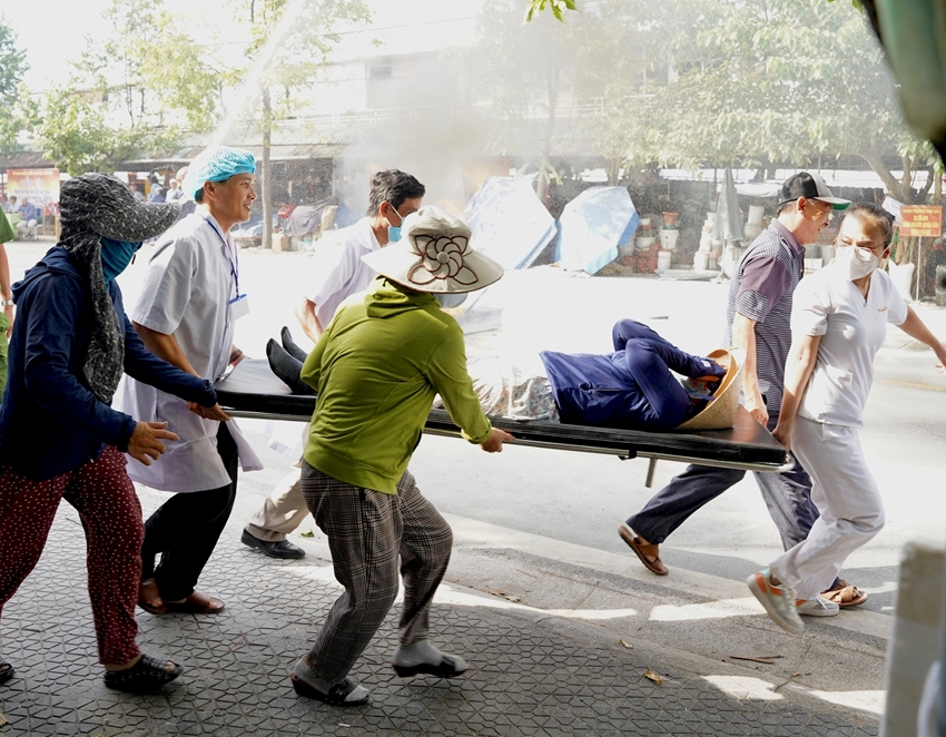 | Tình huống sơ cấp cứu người dân ra khỏi khu vực cháy |
