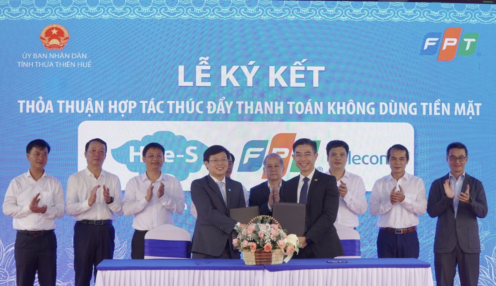 Dịp này đã diễn ra ký kết thỏa thuận hợp tác thúc đẩy thanh toán không dùng tiền mặt tại tỉnh Thừa Thiên Huế giữa Trung tâm IOC Huế và Tập đoàn FPT.