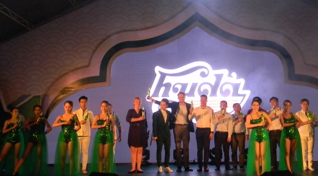 Lãnh đạo Carlsberg Việt Nam và các đại biểu giới thiệu mẫu thiết kế chai Huda mới