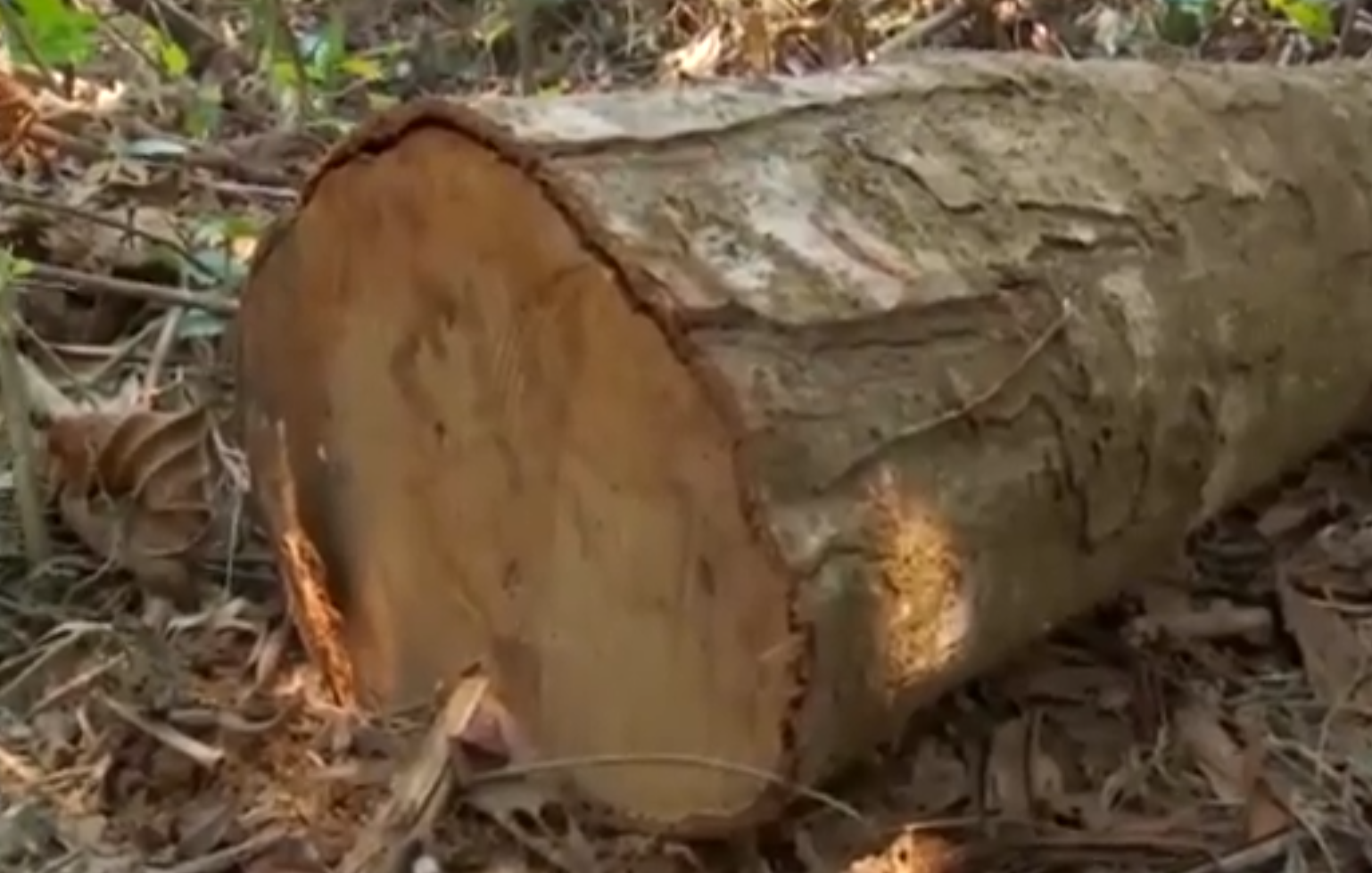 Chúng tôi nhận thấy phần lớn các cây đổ ngã đều được đốn hạ bằng tay, công cụ thô sơ, ít xuất hiện dấu vết cưa máy, cho thấy các đối tượng mất khá nhiều thời gian để chặt phá nhiều cây rừng. Khu rừng bị “lâm tặc” xâm hại còn nằm tiếp giáp với các cánh rừng keo tràm của người dân địa phương. Điều này đặt ra nghi vấn, chủ rừng quá chủ quan, thiếu sự quan tâm, chưa thường xuyên tuần tra, kiểm tra để ngăn chặn kịp thời tình trạng vi phạm tại khu rừng này.