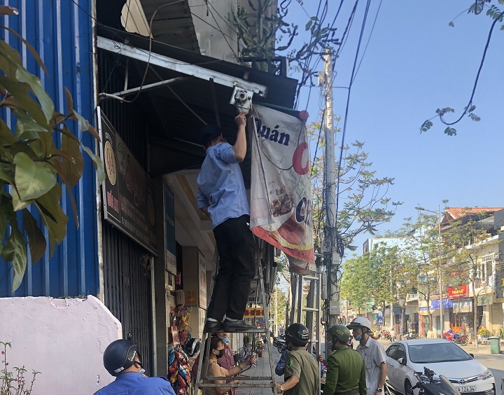 Lực lượng chức năng xử lý việc lấn chiếm vỉa hè