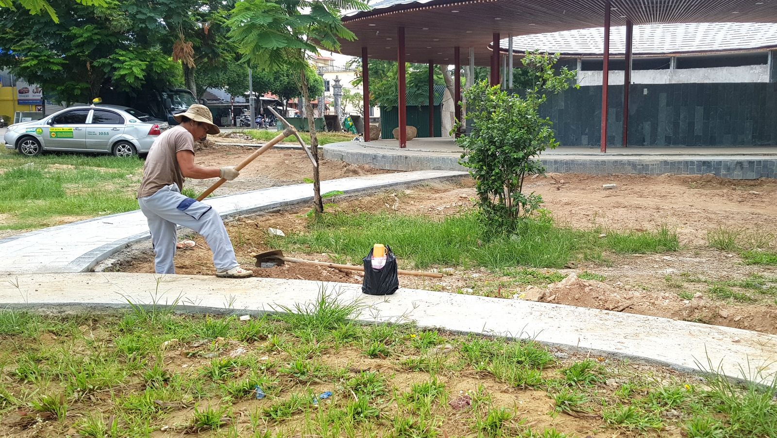 Người lao động mang theo phích nước mát nhằm giải tỏa cơn khát khi lao động ngoài trời