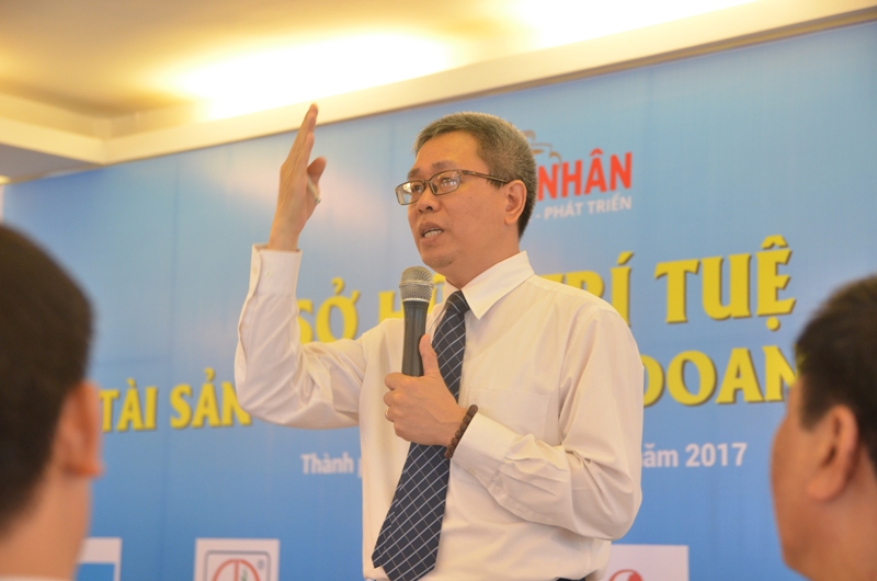 Ông Trần Quang Hào trình bày thắc mắc của doanh nghiệp về tra cứu thương hiệu nhãn hiệu để tránh trùng lặp