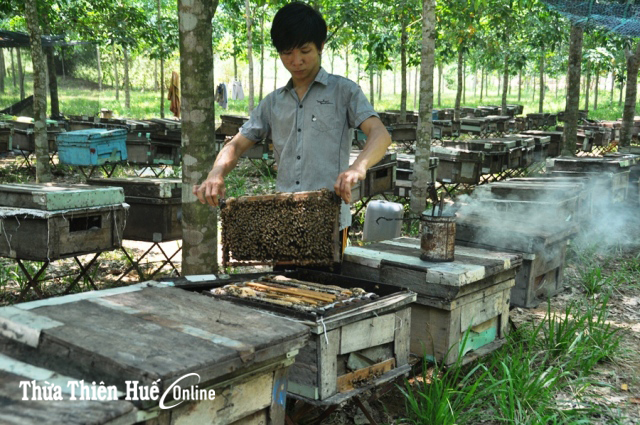 Nằm sâu giữa rừng keo lá tràm bạt ngàn của xã Hương Phú, trại ong Trường Sơn là một trong những cơ sở nuôi ong lấy mật có quy mô đầu tư bài bản. Năm 2011, sau khi tìm hiểu kỹ thuật nuôi ong, chủ trại ong này đã đầu tư phát triển mô hình nuôi o¬ng ngoại, giống có nguồn gốc từ Italia với số lượng 400 đàn. Sau 5 năm, đến nay mô hình nuôi ong này đã phát triển lên 1.500 đàn, được đánh giá là mô hình thành công nhất Nam Đông. Bình quân cho thu hoạch khoảng 40-50 tấn mật/năm, thời điểm được giá có lúc lên đến 30-40 triệu đồng/tấn. Như vậy, mỗi năm cho doanh thu cả tỷ đồng.