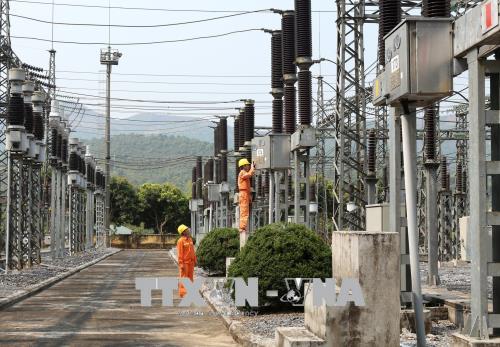 Công nhân Công ty Lưới điện Cao thế miền Bắc kiểm tra kỹ thuật thiết bị trạm biến áp 110 kV Tuần Giáo (Điện Biên). Ảnh: Ngọc Hà/TTXVN
